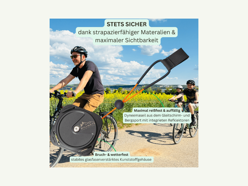 🚩 ZUGKRAFT BIS ZU 150 KG – FÜR ERWACHSENE UND KINDER. Gemeinsame Touren trotz unterschiedlicher Fitnesslevel – mit dem HillMate kannst du dein Kind oder deinen Bike Mate bergauf unterstützen. So bleiben mehr Energie und Spaß für die Abfahrt übrig